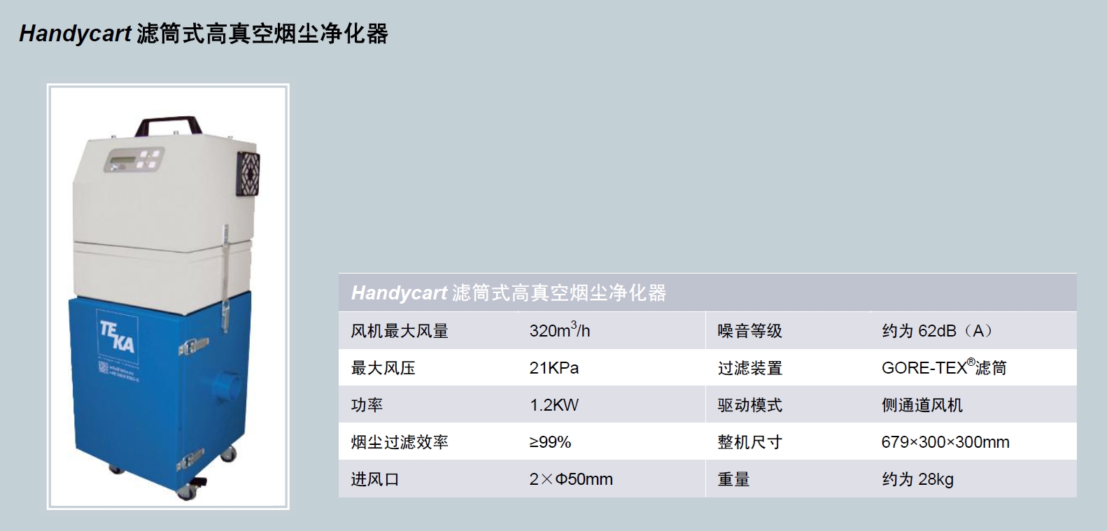 內(nèi)部采用高品質(zhì)濾筒過(guò)濾煙塵,濾筒由GORE-TEX(薄膜狀態(tài)下的PTFE)面料制作,防水,透氣性好,柔軟堅(jiān)韌,煙塵過(guò)濾效率可達(dá)99%以上。